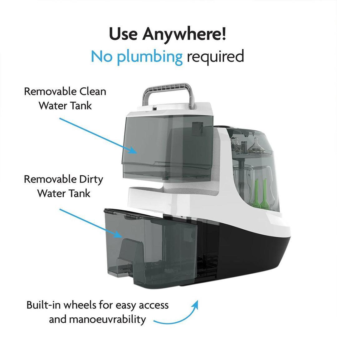 No plumbing, no mess, no stress – simply fill the clean and dirty water tanks, add a Baby Brezza Detergent Tablet (a 60-pack is included), and let the machine do the rest. Compact, easy to use and beautifully designed, it’s a real time-saver for busy parents who want the peace of mind that every feed starts with something truly clean.