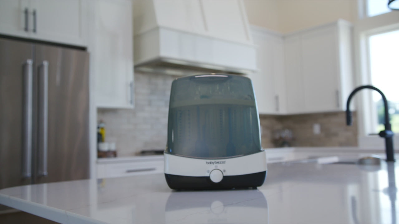The Baby Brezza SuperFast Steriliser-Dryer completes a full sterilising and drying cycle in just 10 minutes, making it 75% faster than other brands. Using natural steam to kill 99.9% of germs and hot air to dry, it keeps bottles, pump parts, and accessories hygienic and ready to use. Contents stay sterilised for up to 48 hours when the lid remains closed, giving parents peace of mind.