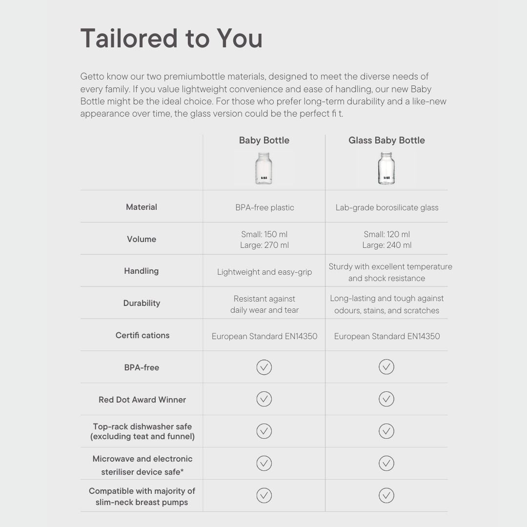 - Made from 100% food-grade, BPA-free materials + compliant with the European Standard EN14350, this bottle set is a safe choice for your baby