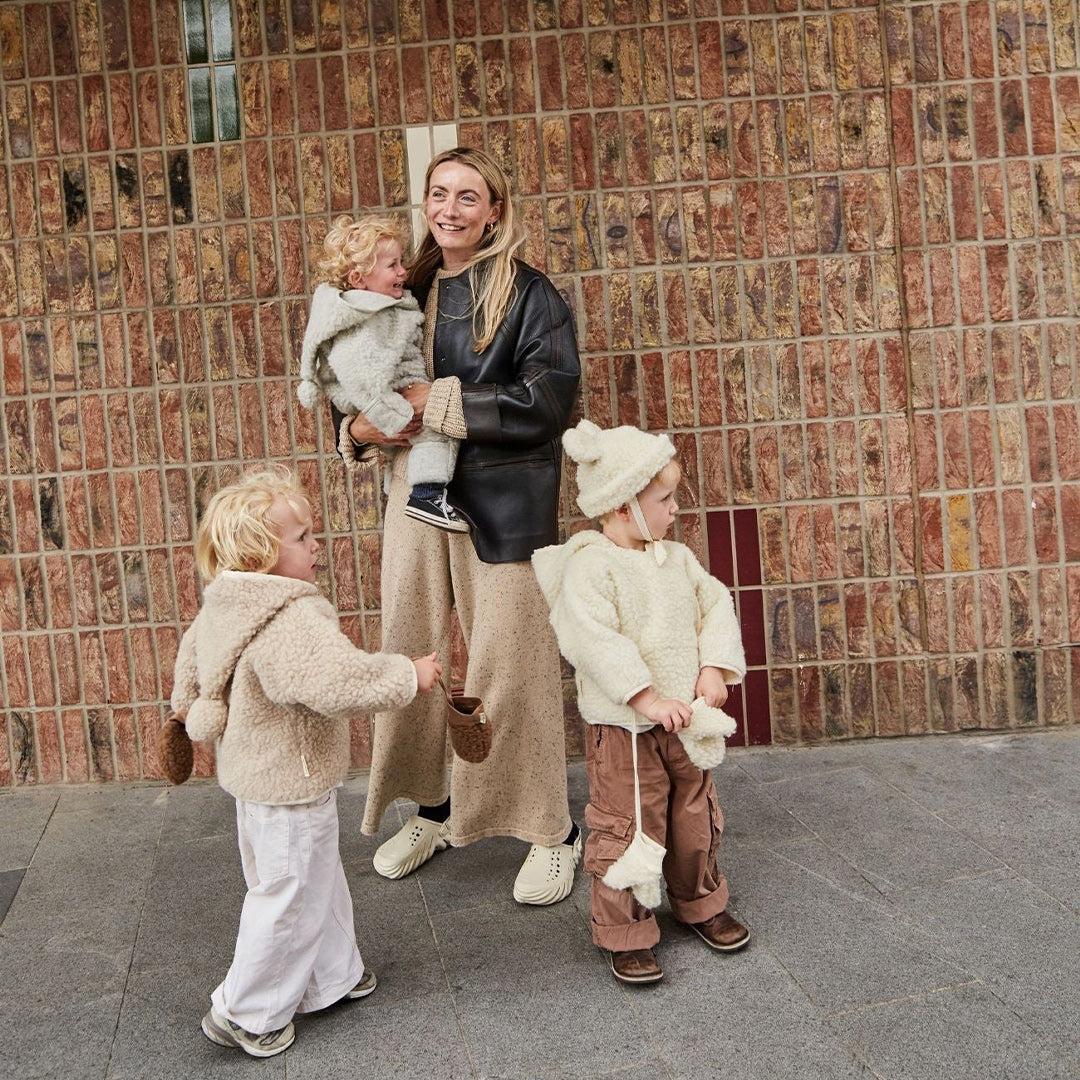 With its fluffy teddy texture, adorable pom pom hood, and wooden button details, this jacket is as charming as it is practical – perfect for layering on in-between days when the weather can’t make up its mind. Gentle on delicate skin and naturally temperature-regulating, it’s a jacket you’ll both reach for time and again.