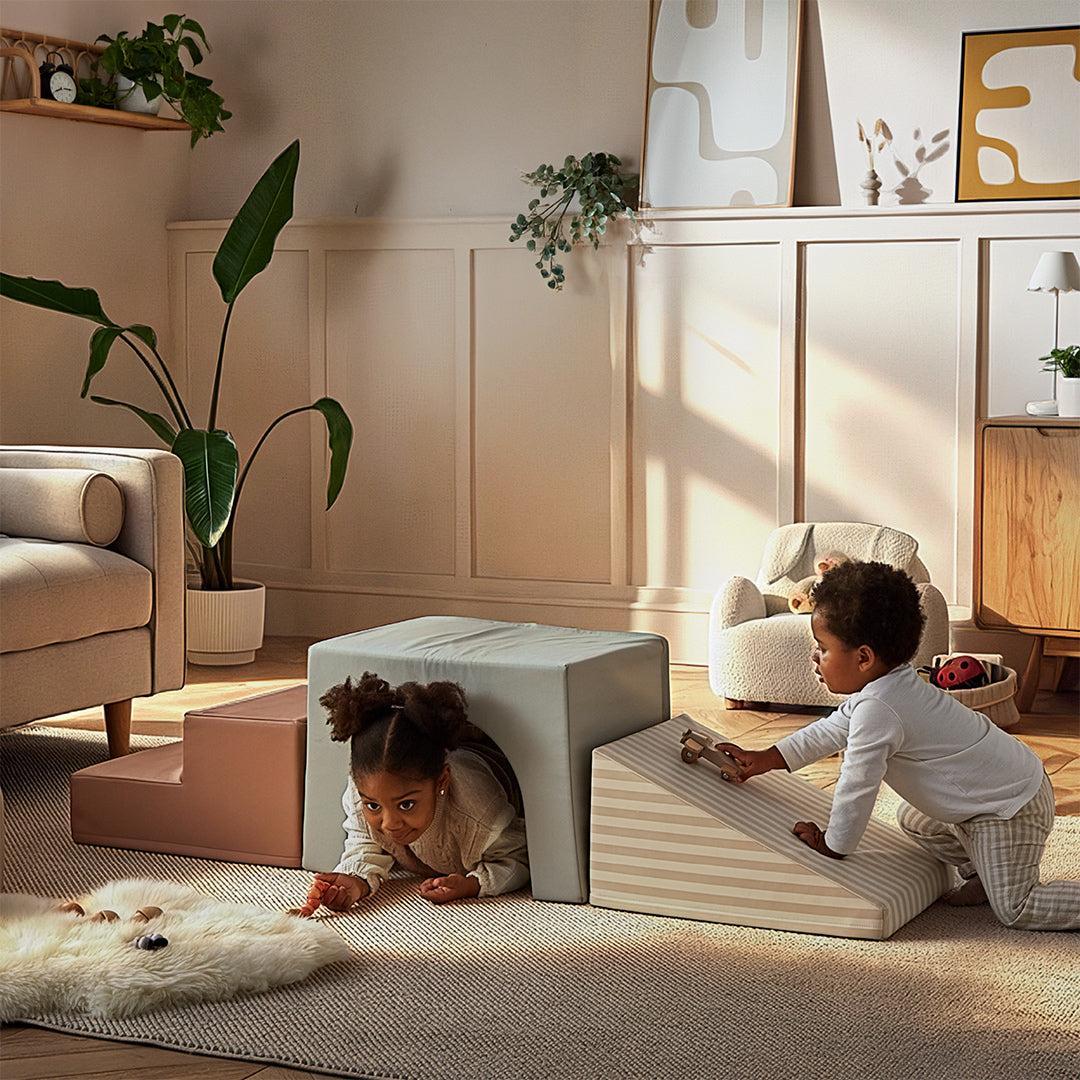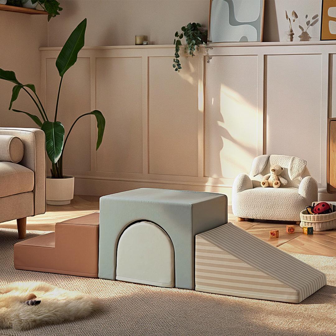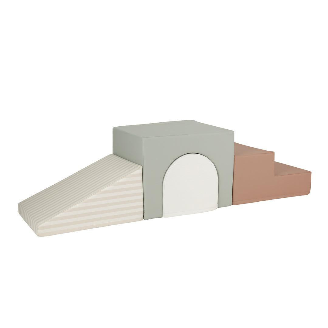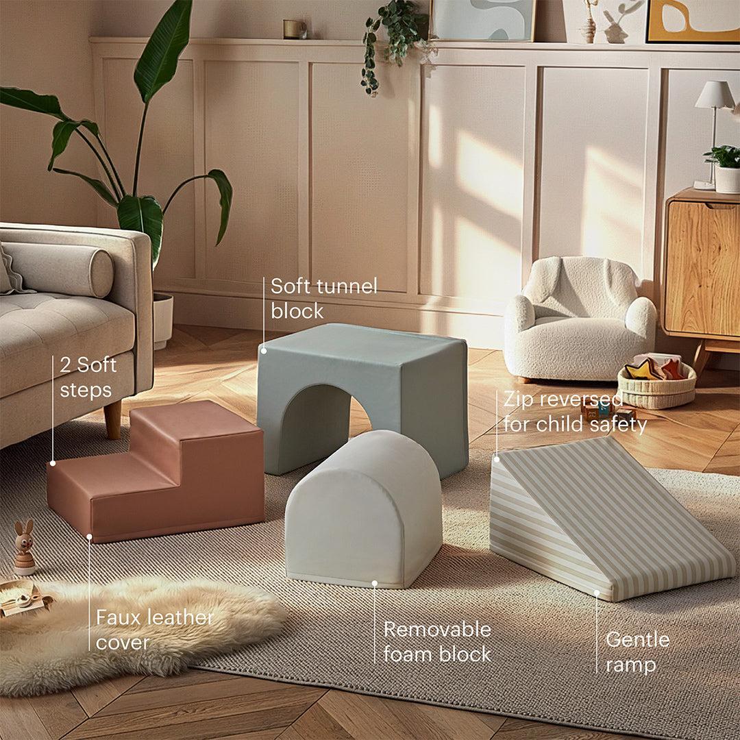 This set includes a soft tunnel block, ideal for crawling and coordination, a removable foam block, perfect for stacking and creative play, a gentle ramp, supporting early climbing and movement, and soft steps, sized for practising balance and confidence.