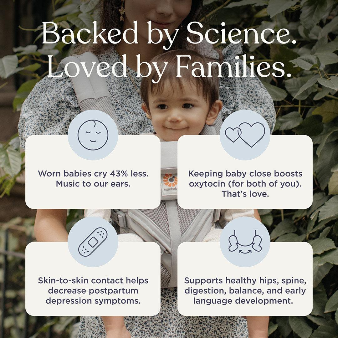 Ergonomically designed for both baby and parent, the Omni Classic (previoulsy Omni 360) provides cushioned lumbar support and crossable shoulder straps for a personalised fit. A tuck-away hood offers sun protection and privacy for naps, while the handy storage pocket keeps your essentials close. With the ErgoPromise Lifetime Guarantee, it’s a carrier made to last - ready for every journey from those first cuddles to curious exploring.