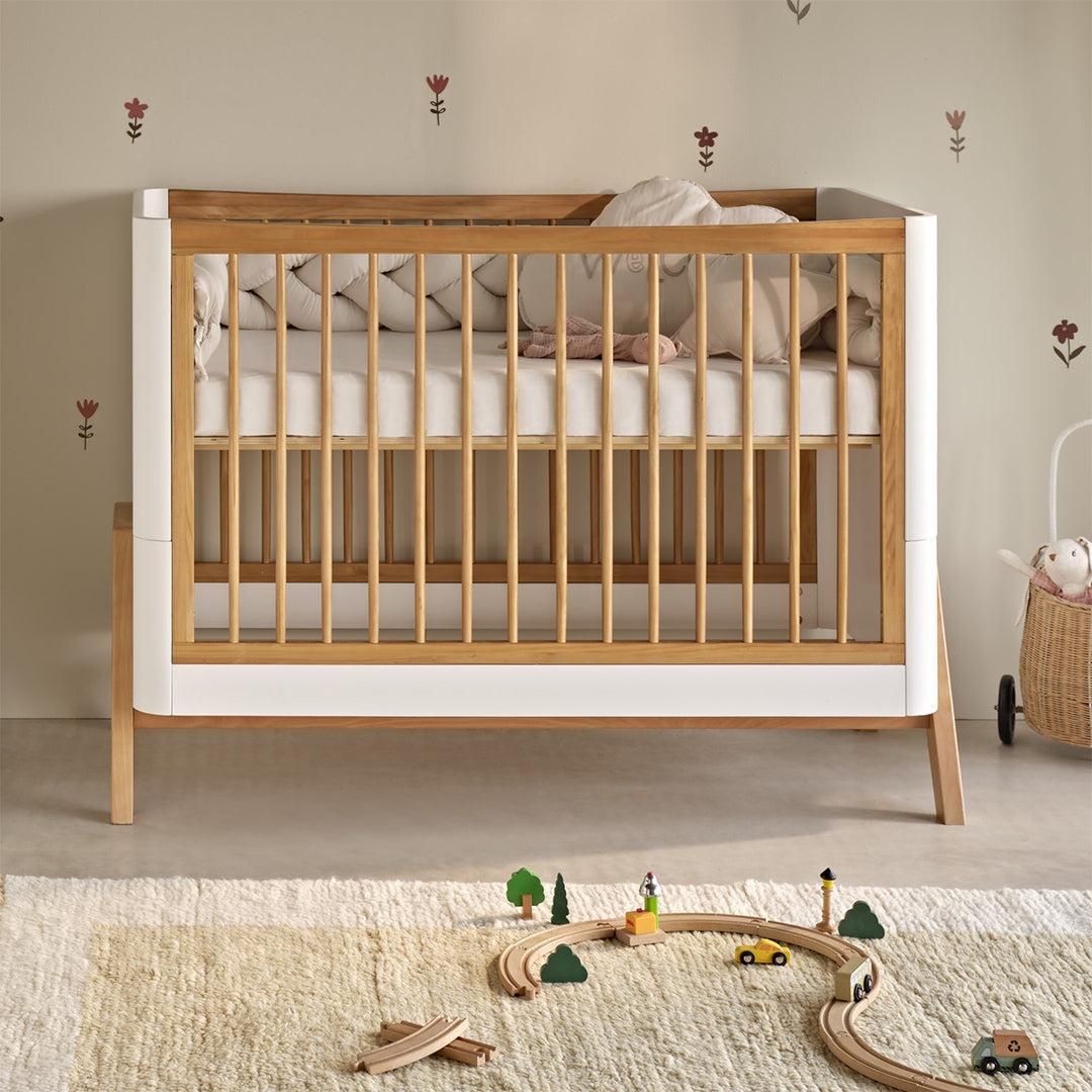 The Gaia Baby Hera Cot Bed 'Studio Edit' in White brings together timeless design and thoughtful function, making it a beautiful centrepiece for any modern nursery. With its softly curved edges, bevelled A-frame legs and smooth white finish, this compact cot bed offers a calm and contemporary aesthetic – all crafted with care from FSC-certified German Beech wood.