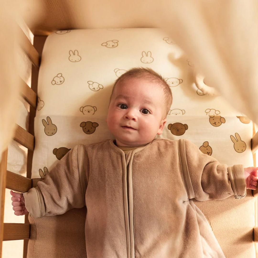 Bring a touch of cosy charm to your little one’s room with the Jollein Miffy and Friends Duvet Cover. Made from 100% soft OEKO-TEX cotton, this set is perfect for toddler or crib beds. Featuring Miffy and her friends in calm, neutral shades, the double-sided all-over print lets you flip it for a fresh look anytime. Snuggle up for story time or bedtime with this sweet, calming print.