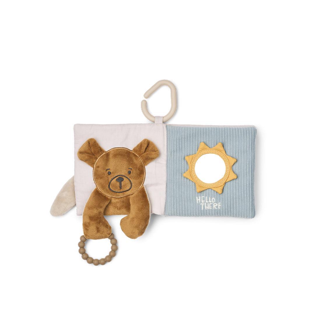 With its handy silicone ring, this fabric book can easily be attached to a pram or changing bag - perfect for play on the go.