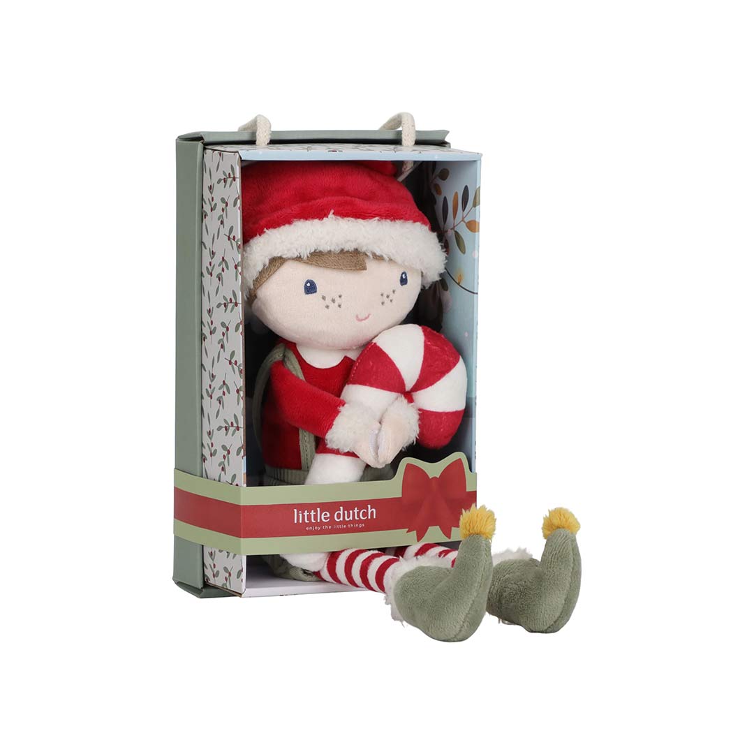 Meet Jim, the cuddly Christmas doll ready to bring festive cheer! With his soft body, cheerful red hat, and Velcro hands that hold his candy cane firmly, Jim is perfect for hugs, play, and holiday adventures. Packaged in a beautiful gift box, he makes a delightful Christmas present for little ones, spreading joy and seasonal magic.
