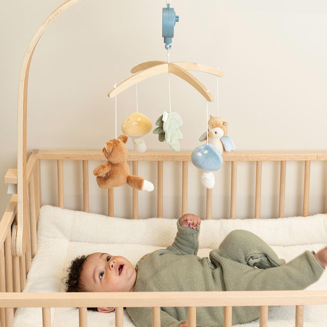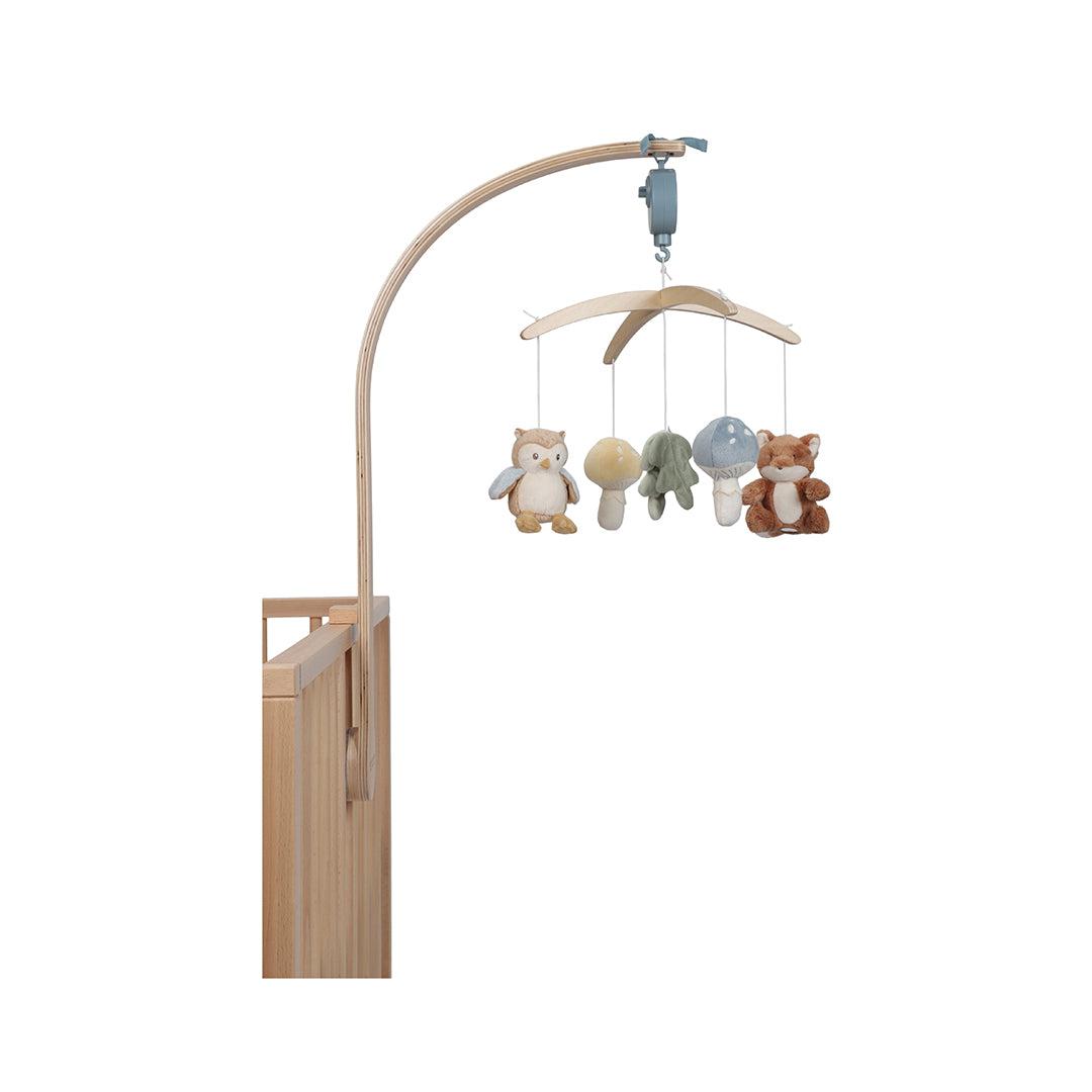 The Little Dutch Wooden Music Mobile Forest Friends features five different hanging toys from the Forest Friends collection: the fox, owl, two colourful mushrooms and a leaf. As your little one enjoys the gentle movement of each toy, the music mobile helps stimulate their visual development, and the sweet lullaby has a wonderfully calming effect.
