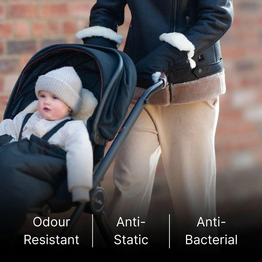 Stay warm and stylish no matter the weather with the Naturally Sheepskins Stroller Hand Mittens. Lined with 100% Merino sheepskin, these mittens offer a cosy, hands-free solution for parents on the go.