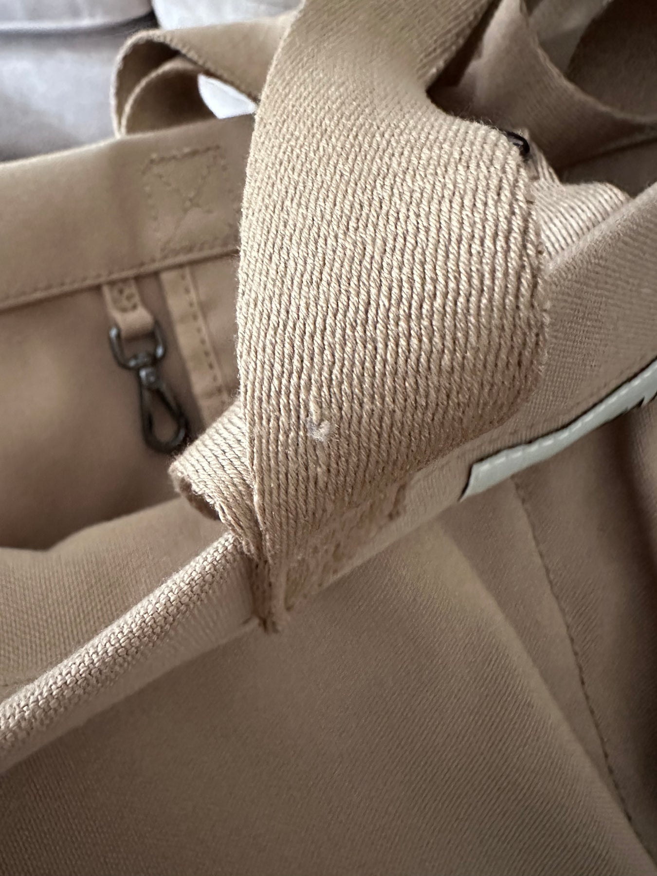 Perfectly imperfect item: This tote has a small defect on the strap, where it looks like a thread might have caught - please see photo provided.