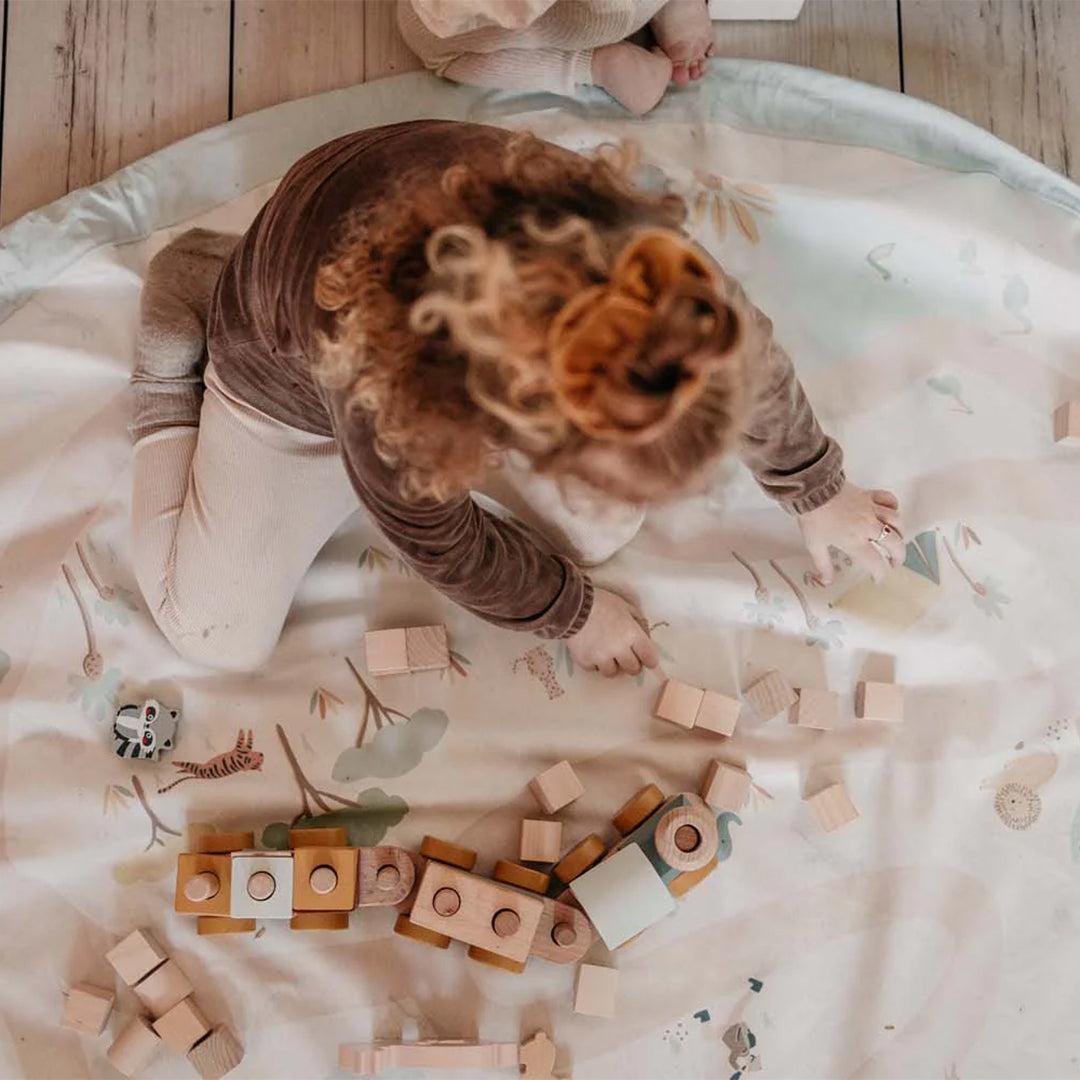 Where every playtime begins with fun and adventure... The Play & Go Noomad Double Sided Play Mat is a clever 2-in-1 playmat and toy storage bag that makes playtime comfortable and tidy. One side features a colourful, engaging design, while the reverse offers a stylish, versatile look to suit your home. When playtime ends, simply pull the drawstrings to turn it into a practical storage bag - keeping toys and treasures neatly contained until the next adventure.