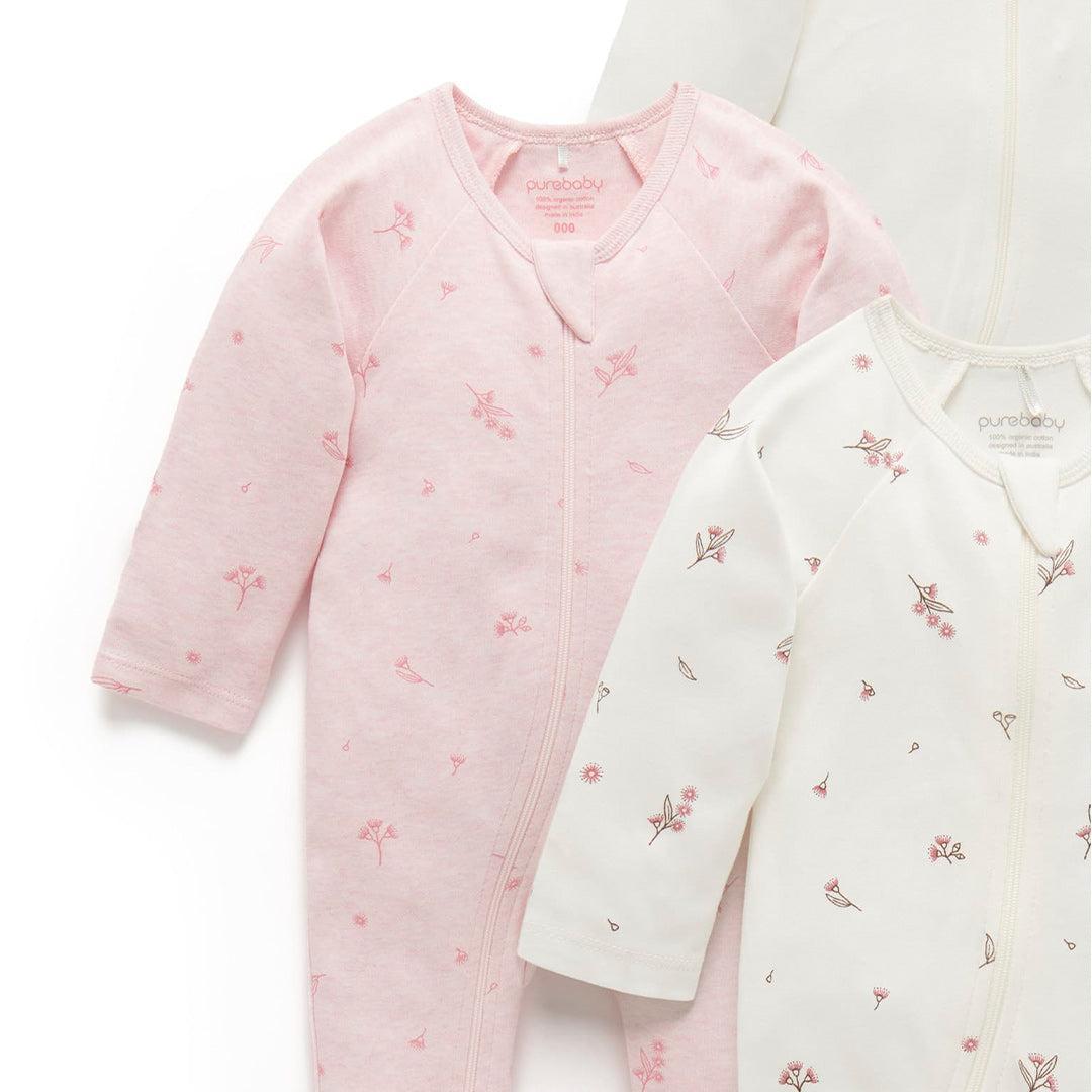 Purebaby 4 Pack Zip Sleepsuit - Vanilla Blossom Pack