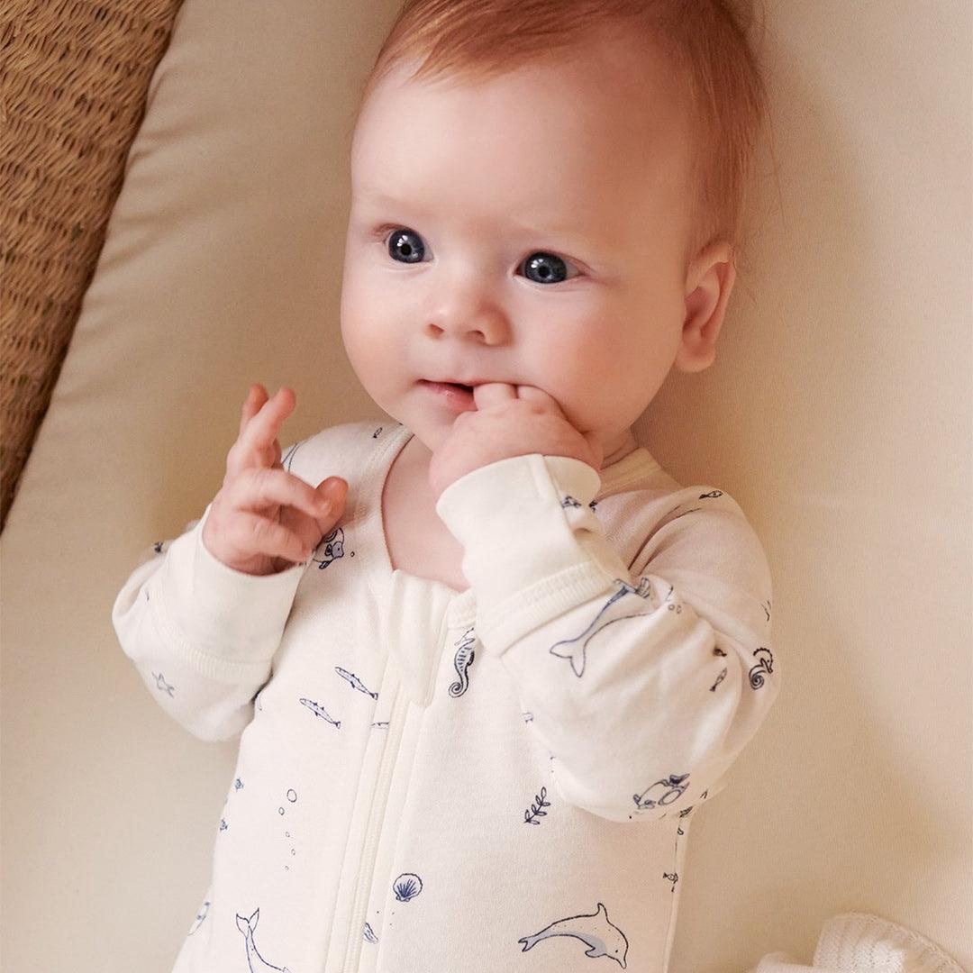 Purebaby 4 Pack Zip Sleepsuit - Vanilla Nautical Pack