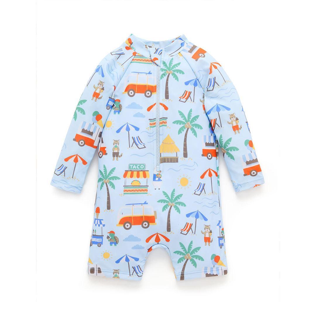 Splash, play, and stay protected with the Purebaby Printed Long-Sleeved Sunsuit in Cancun Print. Designed for sun-safe fun, this lightweight and breathable sunsuit features long sleeves for extra coverage, plus a convenient front zip with a safety fold for easy dressing. Crafted from recycled polyester and elastane, it’s chlorine resistant and UPF 50+, keeping your little one safe while caring for the planet. Perfect for beach days, poolside fun, or any sunny adventures!
