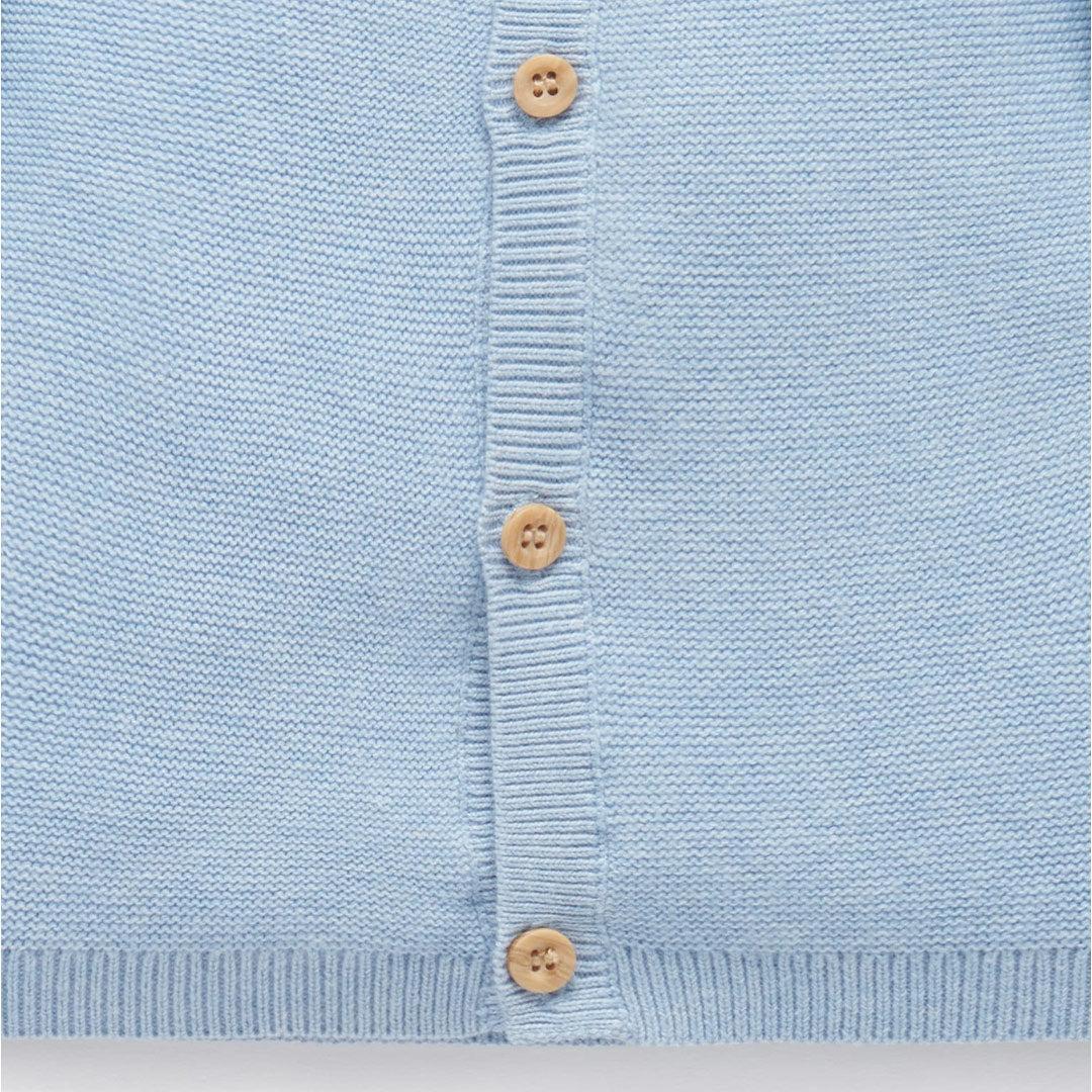 Featuring a textured garter stitch, ribbed trimmings, and wood-look buttons, this cardigan pairs beautifully with Purebaby bodysuits and leggings for a complete, cosy outfit.