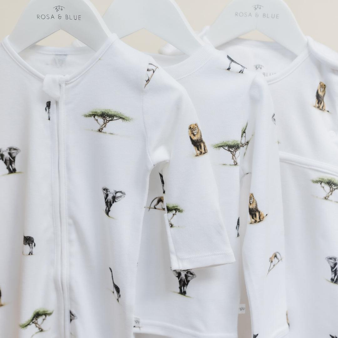 The Rosa & Blue Sleepsuit in Safari is a blend of bamboo and organic cotton. The sleepsuits are beautifully soft, breathable and thermo-regulating, the entire range has been lovingly crafted with delicate and sensitive skin in mind, offering the ultimate comfort and simplicity. The addition of a clever, concealed 2-way zipper makes night-time changes fuss free.