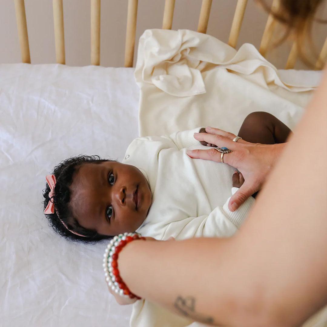 - Crafted with 95% organic cotton, offering a gentle, chemical-free option for both your baby + the environment