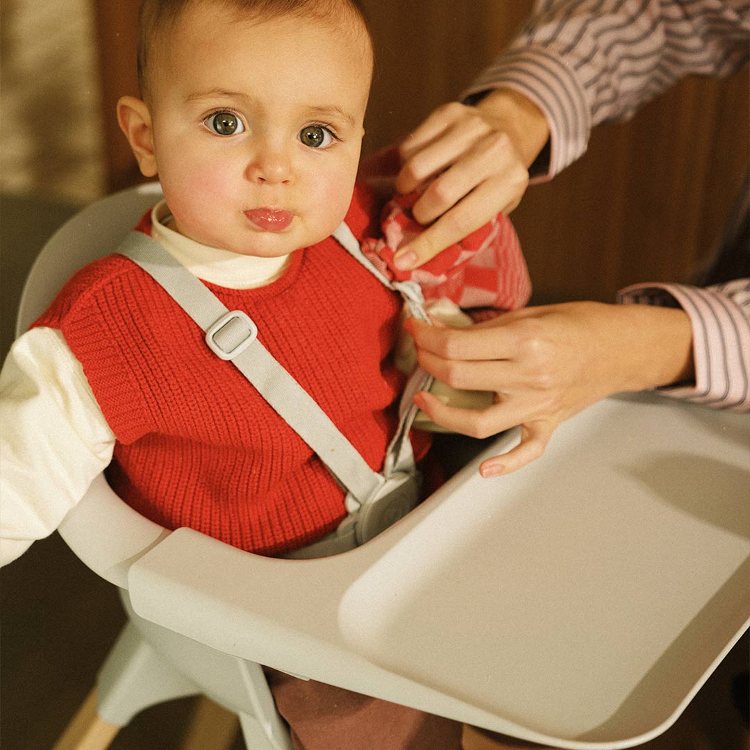 Featuring an adjustable footrest with 2 positions that provide optimal support as your child grows for an ergonomic and comfortable posture, the Clikk highchair includes everything you need to eat, play and clean - effortlessly.