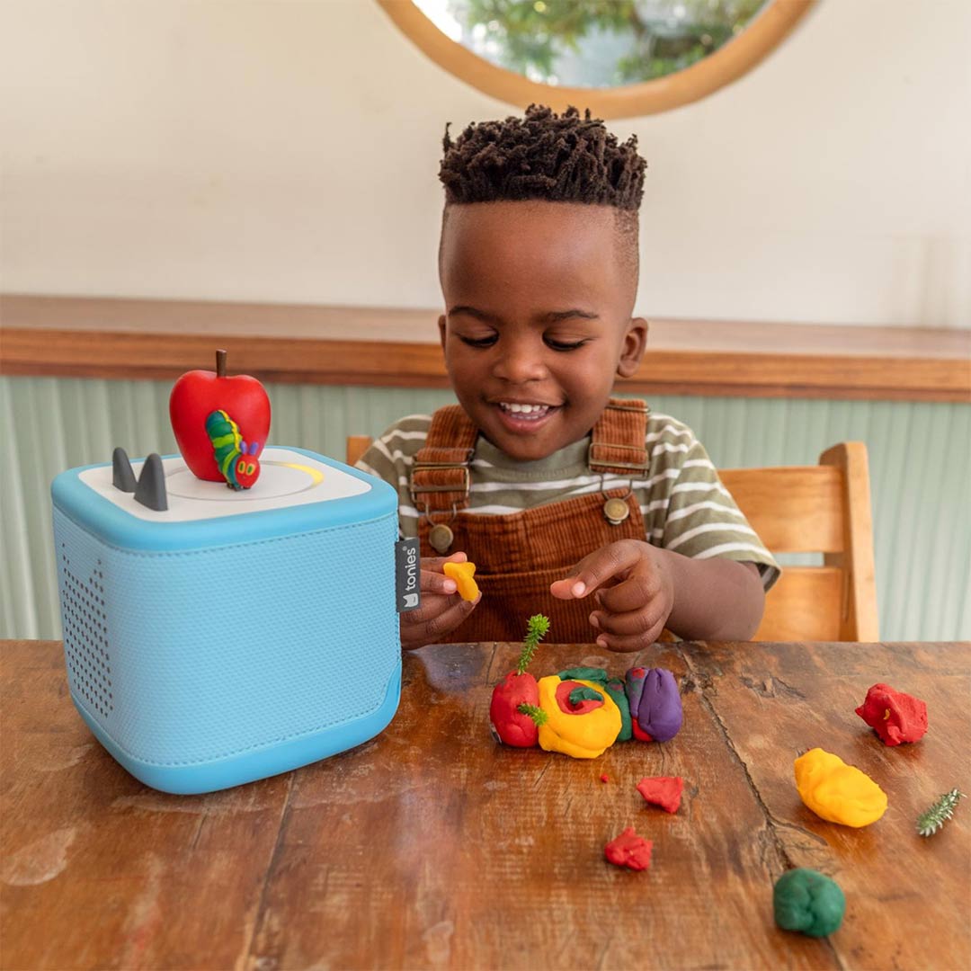 The Tonies The World Of Eric Carle - The Very Hungry Caterpillar And Friends character magnetically attaches to the Toniebox (sold separately), allowing you to listen to something different every time. Switch with different Tonie characters and quickly jump between audiobooks, music or your own interactive audio adventures.