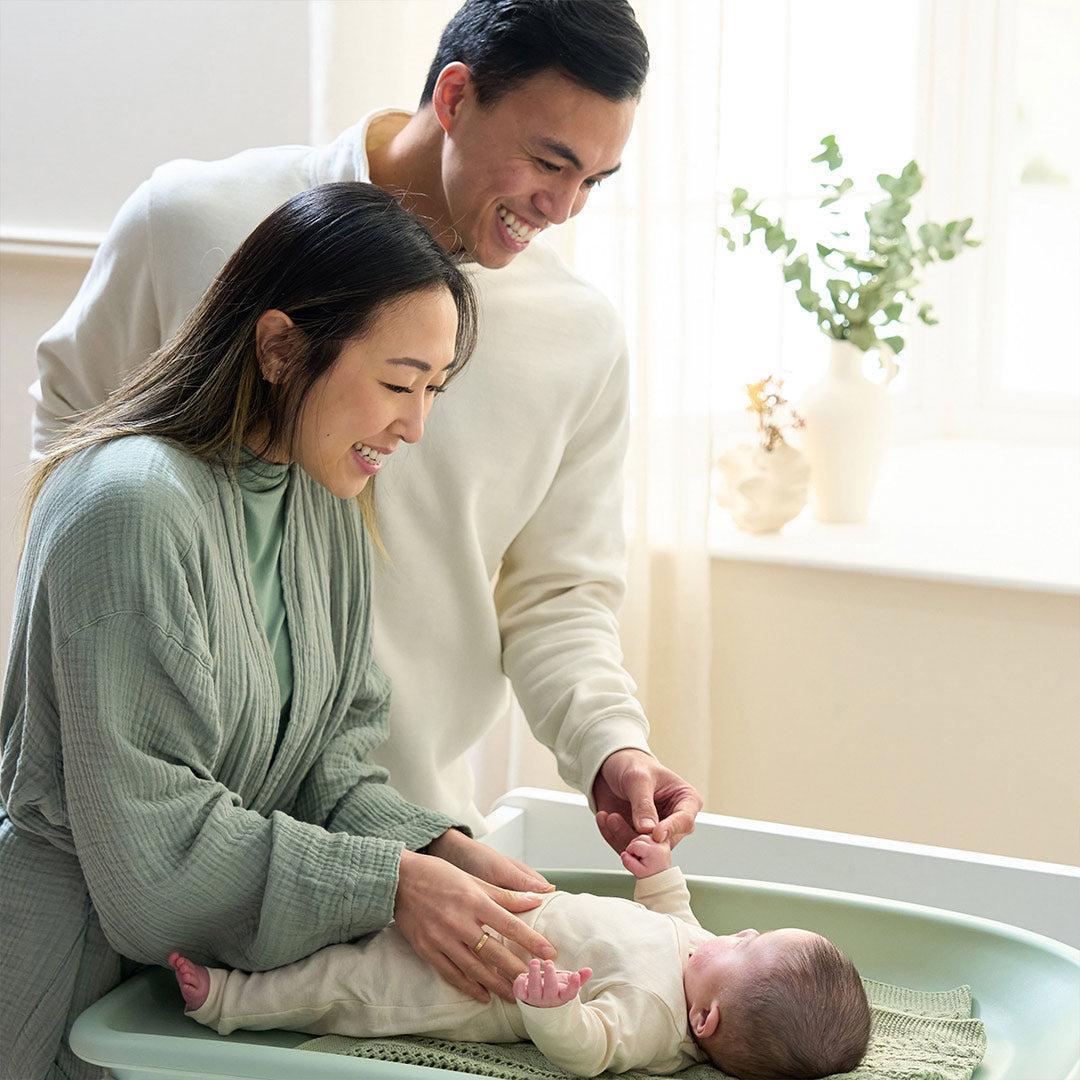 - Cushioned PU foam keeps baby comfortable + supported during changes